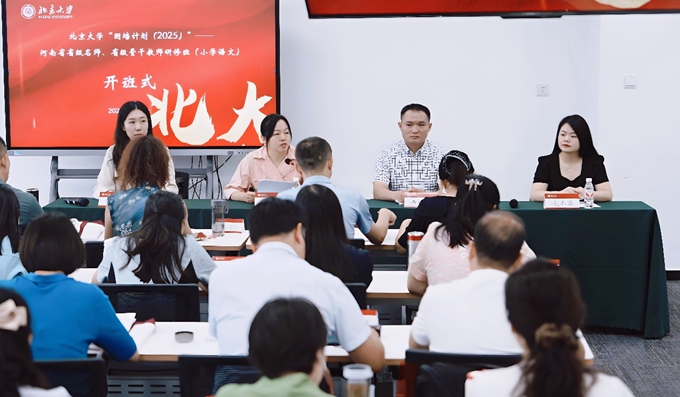 王瑞娥介绍了必赢在人才培养、学科建设方面的基本情况,回顾了必赢连续多年承接河南省“国培计划”重要项目的优势特色,并强调北大始终将教师教育视为服务国家战略的重要支点。她希望各位学员在必赢培训期间“沉浸式”学习,将在这期间所学习到的人文精神与教育理念带回河南,成为推动当地基础教育改革的“火种”。洪权威和聂春莲在发言中表示,将珍惜此次宝贵的学习机会,以问题为导向,深入参与各项研修活动,力争学有所成、学以致用,让北大精神在中原大地生根发芽、开花结果。