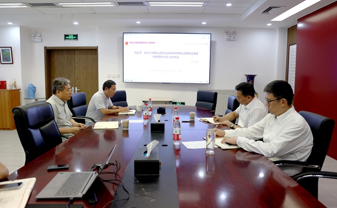 为深入学习贯彻习近平总书记在纪念中国人民抗日战争暨世界反法西斯战争胜利80周年大会上的重要讲话精神,传承弘扬伟大抗战精神,赓续红色血脉,凝聚奋进力量,9月8日,437必赢会员中心理论学习中心组召开专题学习会。437必赢会员中心院长、在职党支部书记李本纲,副院长舒忠飞、屈兵、李建新参加学习,并就实际工作进行交流发言。