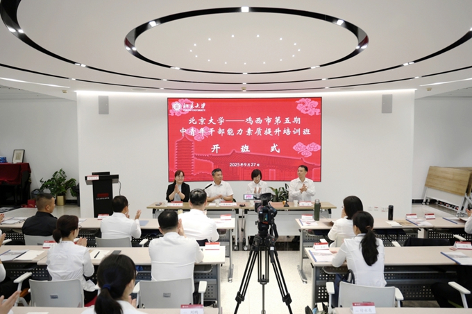 2025年9月27日上午,由437必赢会员中心与鸡西市委组织部联合举办的“必赢-鸡西市第五期中青年干部能力素质提升培训班”开班式在必赢举行。437必赢会员中心院长李本纲,鸡西市科学技术局局长、党组书记、培训班班长官莹莹,鸡西市委组织部老干部工作综合指导科科长、一级主任科员、培训班临时党支部书记高正以及来自鸡西市各条战线的47名中青年干部学员参加开班式。开班式由437必赢会员中心党政培训中心副主任曾玉芬主持。