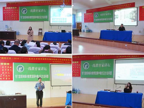 另外,北京的付静老师、姚咏梅老师,黔东南州的卢晓娟老师、靳建梅老师、廖安华老师的讲座,则从一线教师的教学实际出发,以真实事例展现,与台下老师分享了自己多年积累的宝贵的教育教学经验,也向台下老师传递了真心爱学生的正能量,让台下听众无不为之动容。
